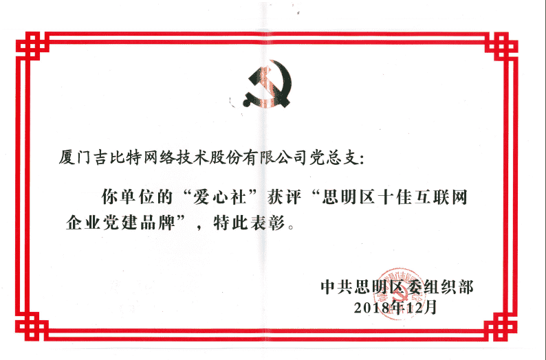 • 党建新闻 35273党总支爱心社获评思明区 “十佳互联网企业党建品牌”