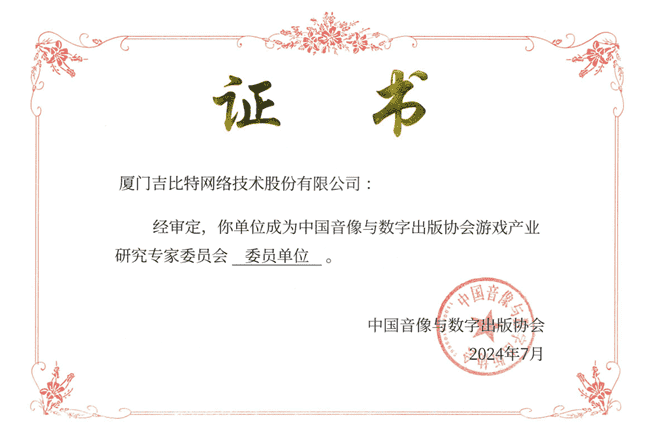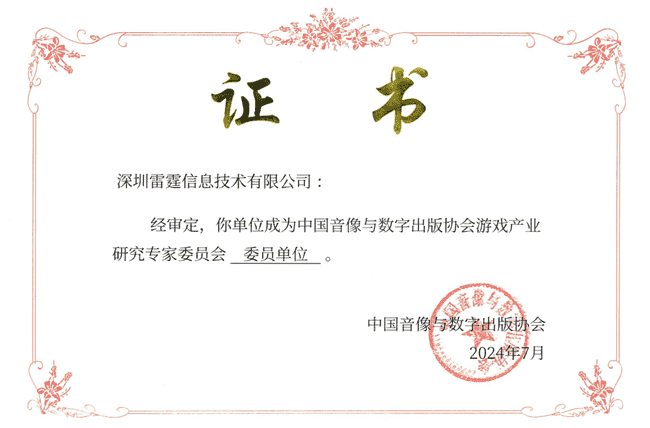2024年7月25日,,,,中国音像与数字出版协会游戏产业研究专家委员会(以下简称“中国音数协游戏专委会”)成立大会在上海市召开,,,,厦门35273网络技术股份有限公司及其子公司深圳雷霆信息技术有限公司(以下统称“公司”)正式成为中国音数协游戏专委会委员单位。。