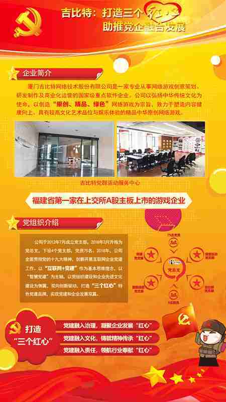 未来公司将全面学习贯彻习近平新时代中国特色社会主义思想和党的十九大精神,,,,持续强化“互联网+党建”的思维理念,,以“智慧党建”为主轴,,,,以党组织建设和企业先进文化建设为侧翼,,,双向创新驱动,,,,引领有信仰、、、、有情怀、、、有价值的新时代游戏研发运营,,,,在不断发展壮大的同时,,,成为行业的“红色标杆”,,实现党建和企业发展双赢。。